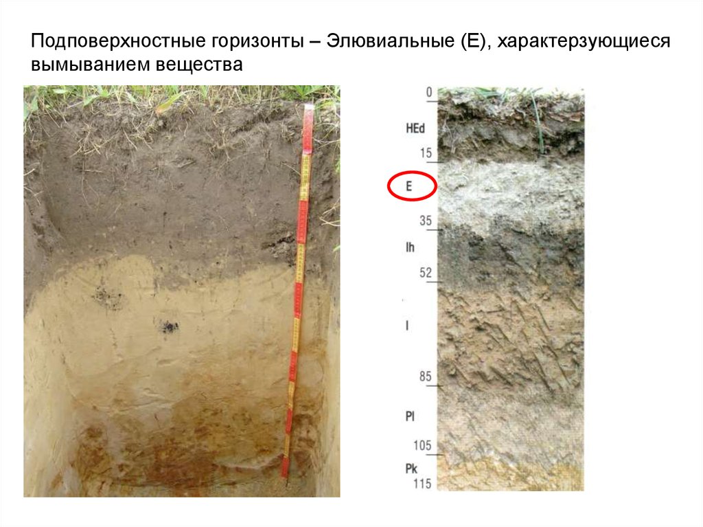 Подповерхностные горизонты – Элювиальные (Е), характерзующиесявымыванием вещества