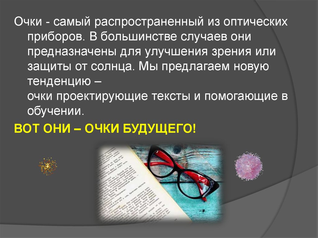очки проектирующие тексты и помогающие в