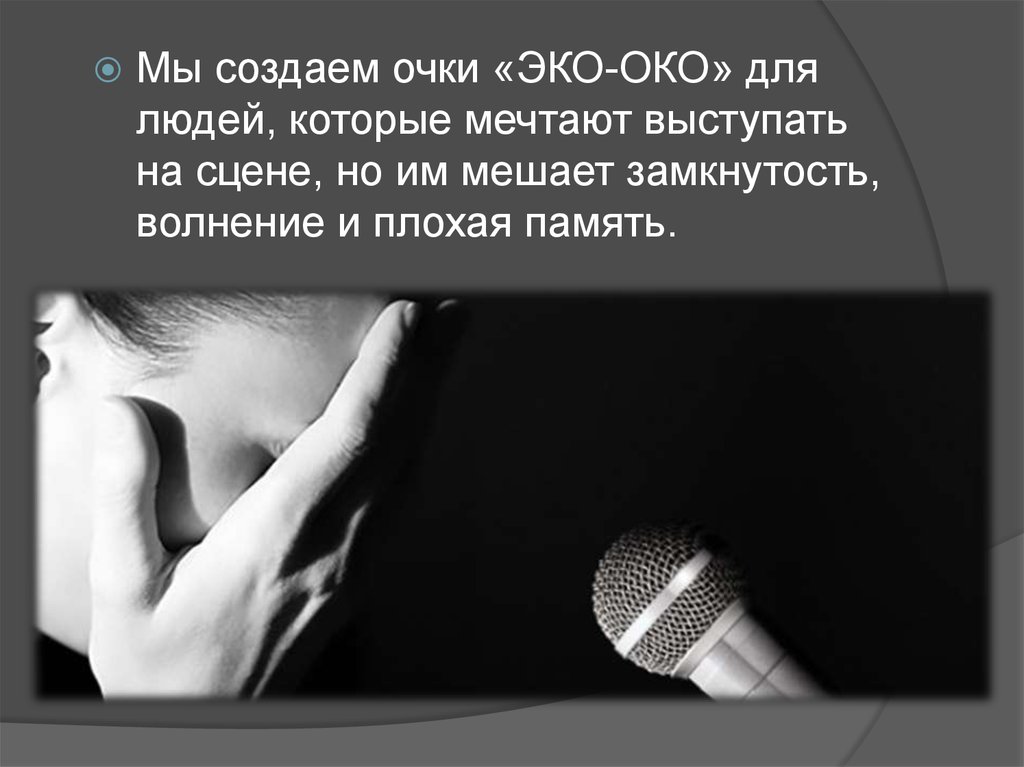 Мы создаем очки «ЭКО-ОКО» длялюдей, которые мечтают выступать