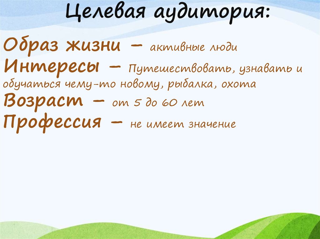 Целевая аудитория:Образ жизни – активные люди