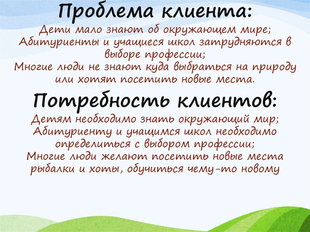 Проблема клиента:Дети мало знают об окружающем мире;