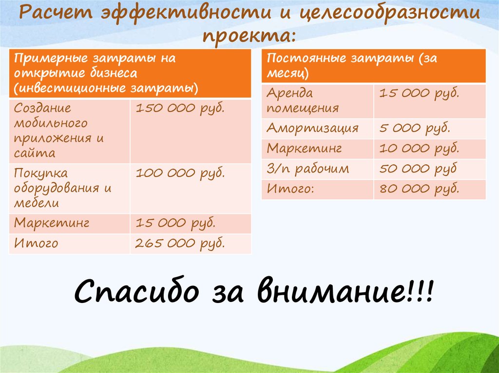 Расчет эффективности и целесообразностипроекта:
