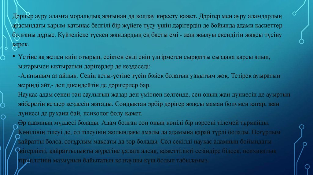Науқас адам сенен тән саулығын жазар деп үмітпен келгенде, сен оның жан дүниесін де ауыртып