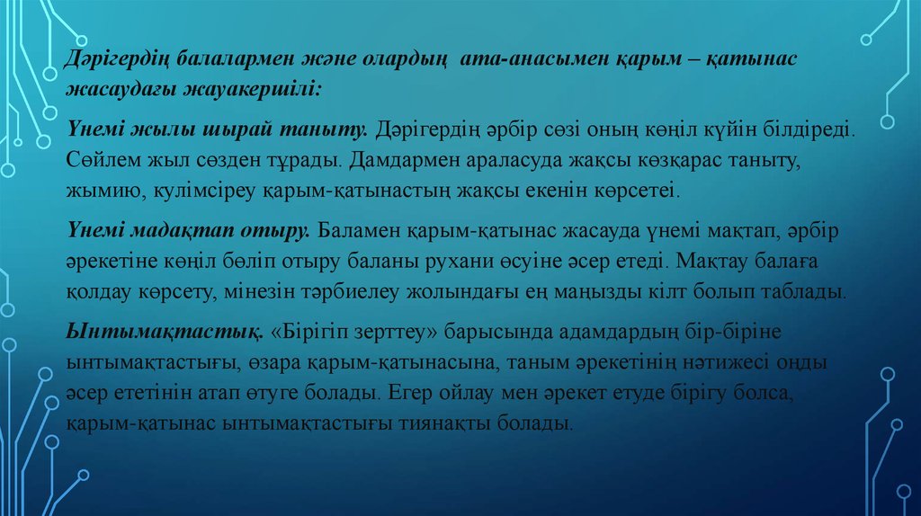Дәрігердің балалармен және олардың ата-анасымен қарым – қатынасжасаудағы жауакершілі: