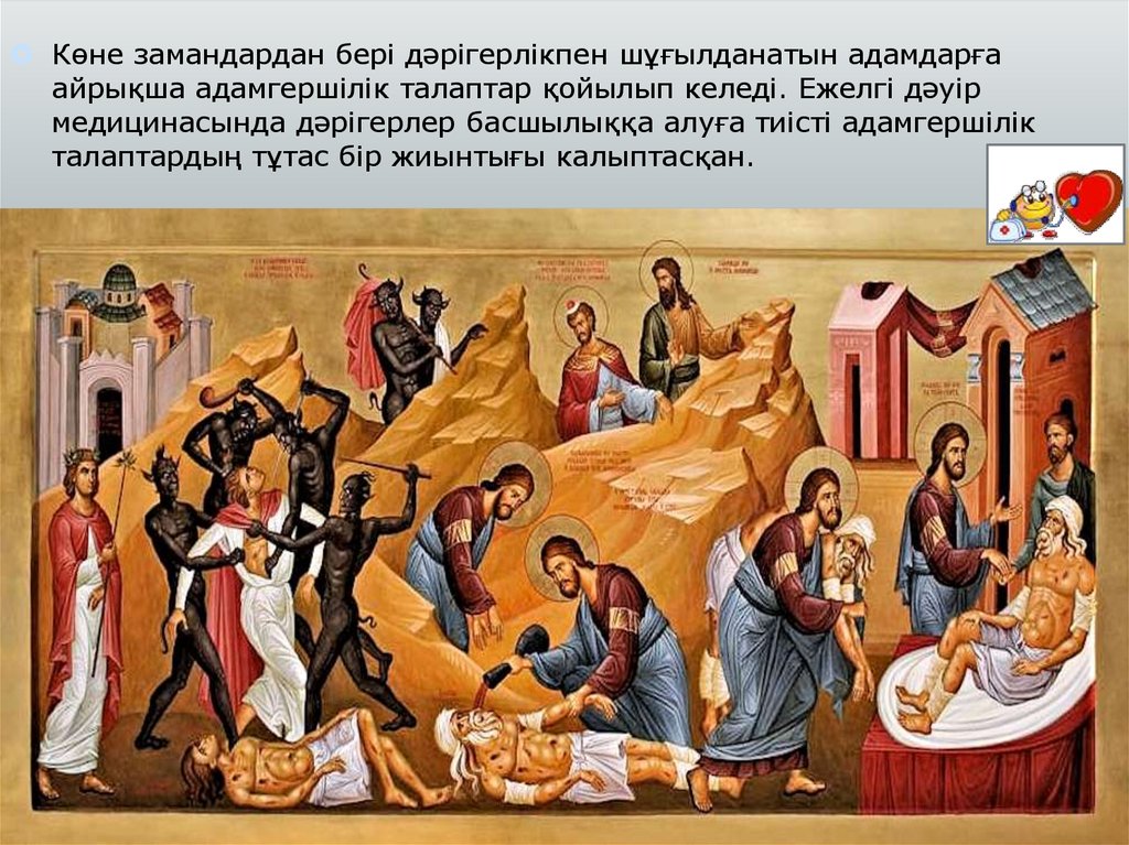 Көне замандардан бері дәрігерлікпен шұғылданатын адамдарғаайрықша адамгершілік талаптар қойылып келеді. Ежелгі дәуір