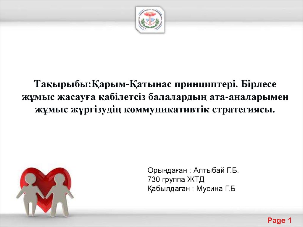 1. Тақырыбы:Қарым-Қатынас принциптері. Бірлесе жұмыс жасауға қабілетсіз балалардың ата-аналарымен жұмыс жүргізудің коммуникативтік стратег