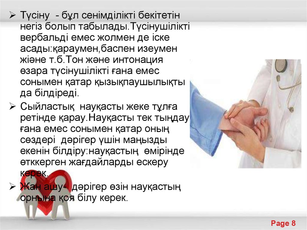 • Дәрігер науқасқа құрмет білдіре білу керек