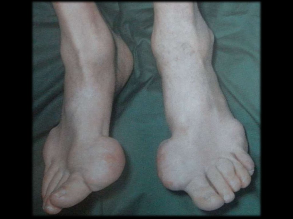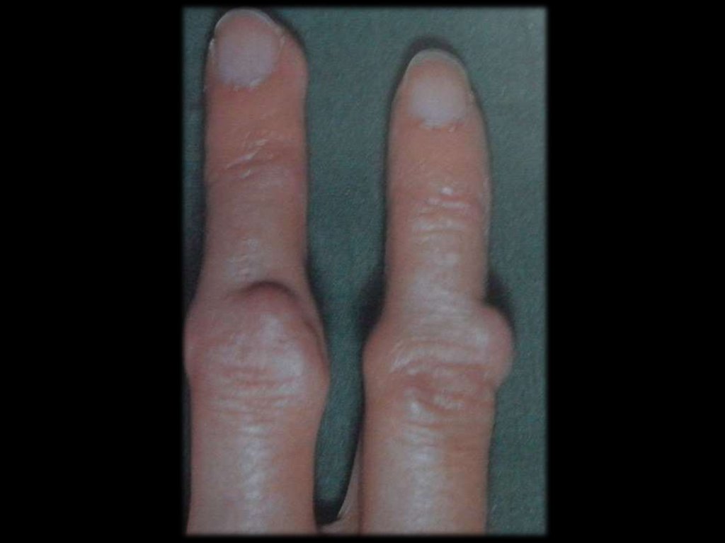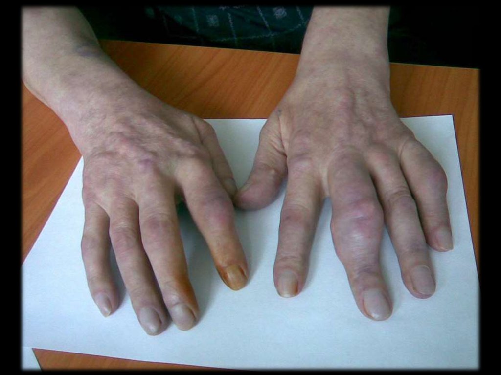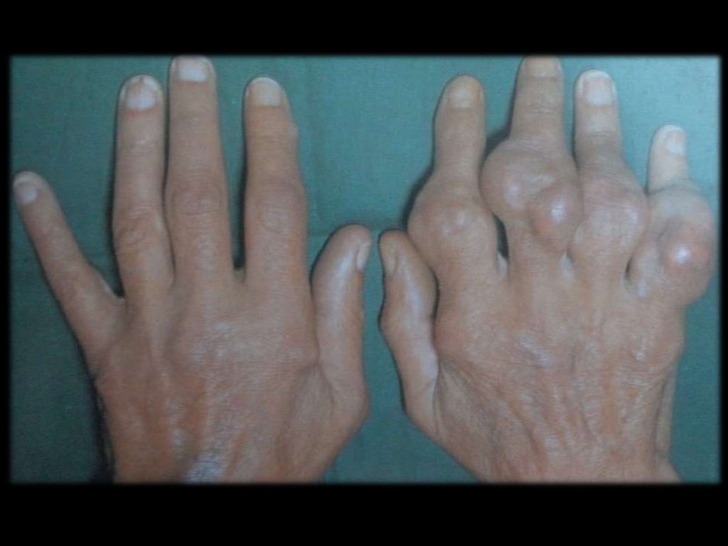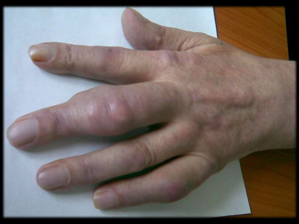 симптом “пробойника” (редко) – тофусы вкости, краевые узуры;
