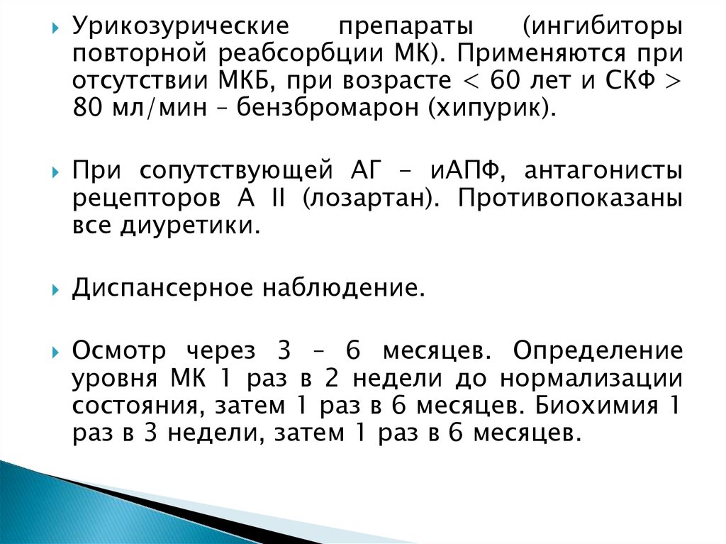 Базисная терапия аллопуринолом. Неначинать лечение во время острой атаки.