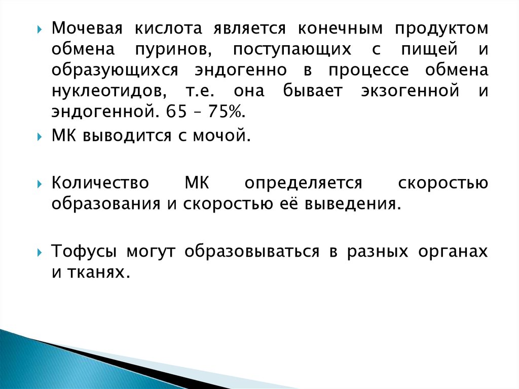 Мочевая кислота является конечным продуктомобмена пуринов, поступающих с пищей и