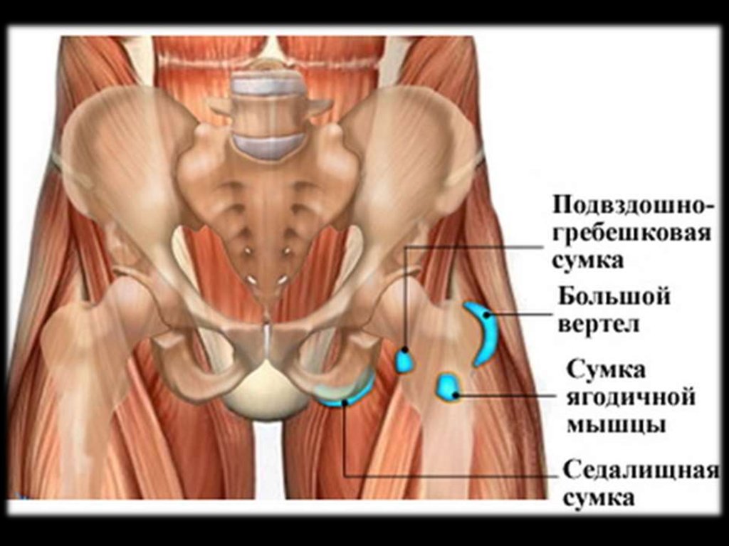 —Большой вертел: билатерально, кзади от вертлужного бугорка;