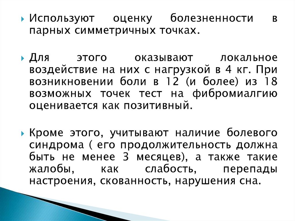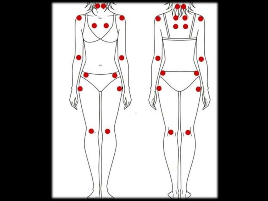 Боль в 11 из 18 —Надостные: билатерально, над остью лопатки с медиального