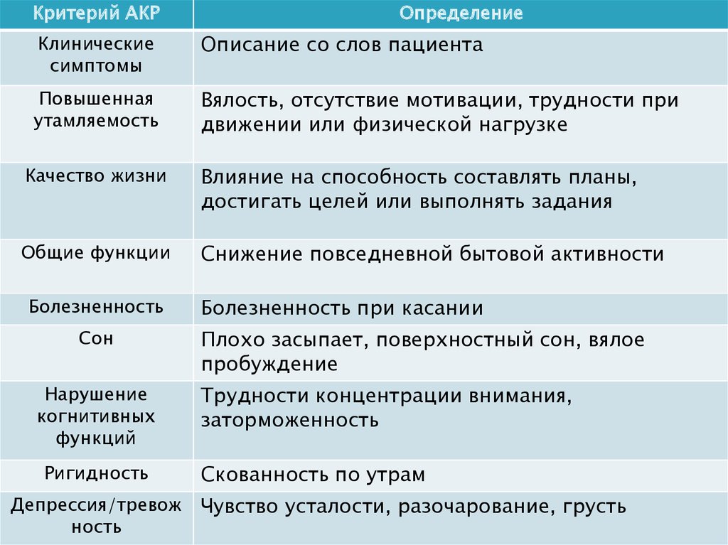 70. Диагностические критерии и клинические характеристики (АКР 1990)
