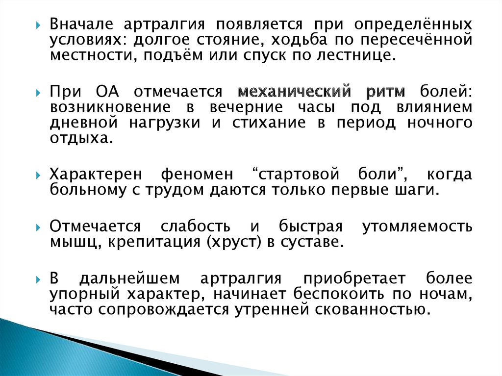 боли в суставах, возникающие к концу дня и/или впервую половину ночи;