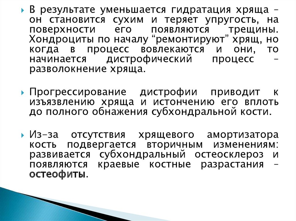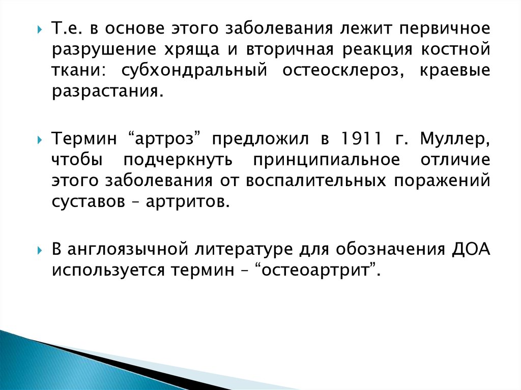 Т.е. в основе этого заболевания лежит первичноеразрушение хряща и вторичная реакция костной