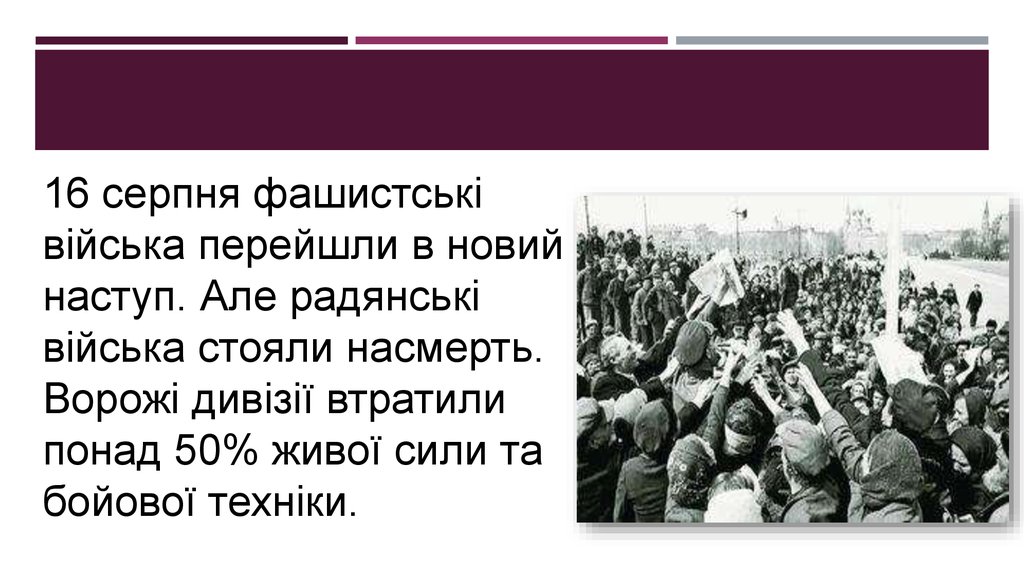 Після місяця кровопролитнихбоїв 22 липня 1941 року ворожі