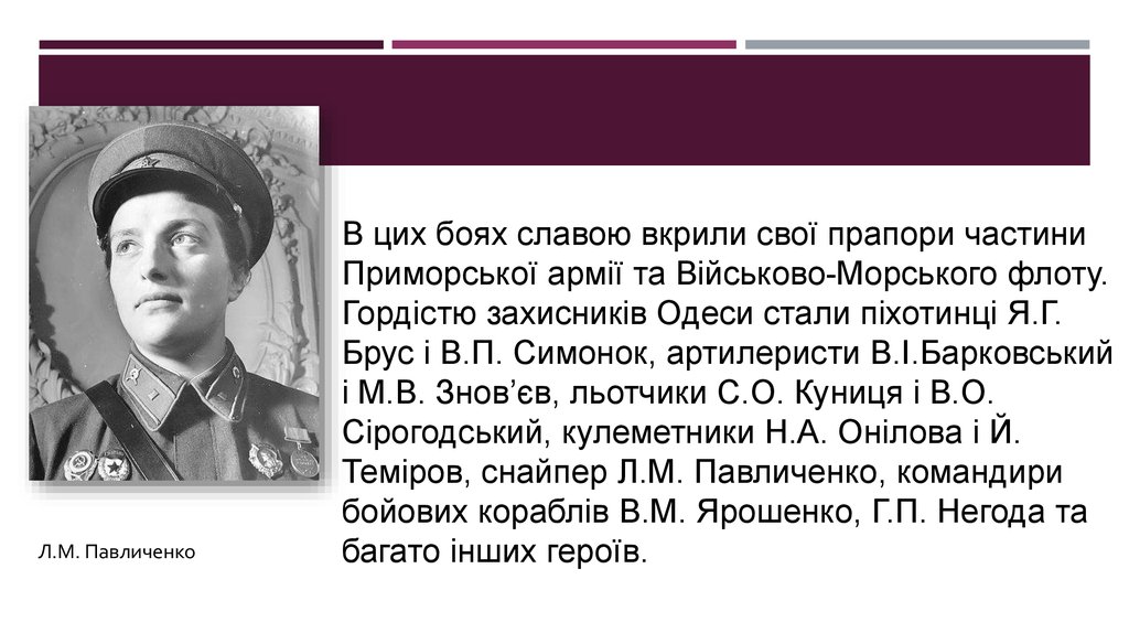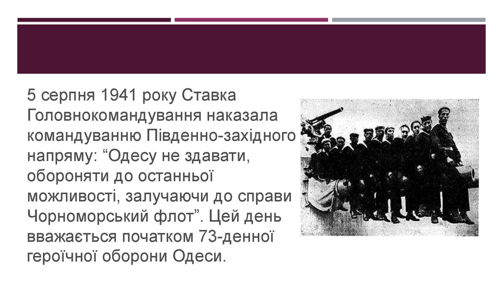 6. ГЕРОЇ ОБОРОНИ ОДЕСИ73 героїчних дні продовжувалася