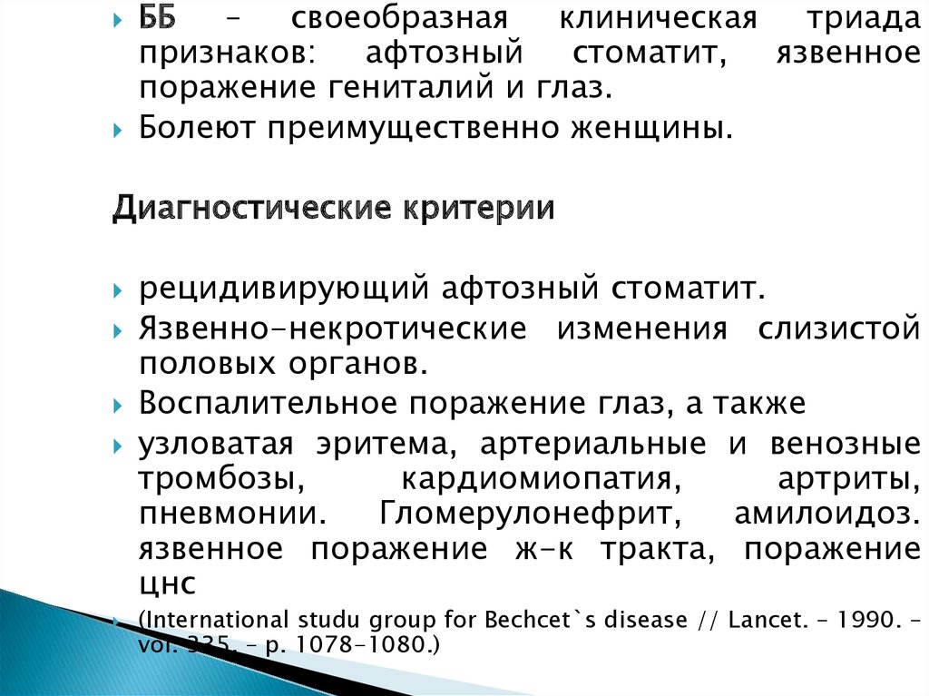 (International studu group for Bechcet`s disease // Lancet. – 1990. –