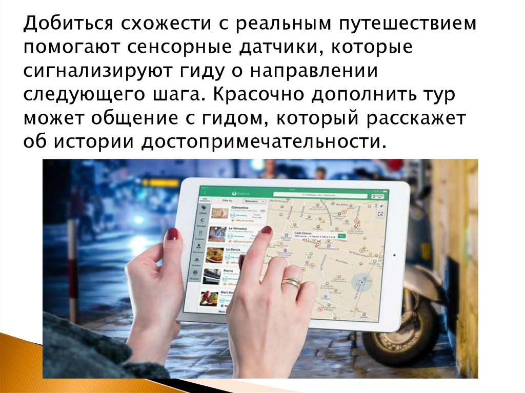 Выбрав направление путешествия, туристпогружается в реально-виртуальный мир. Через