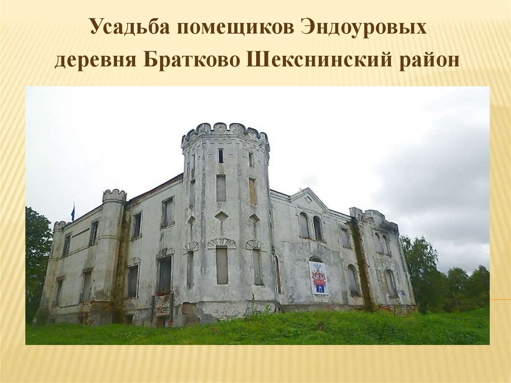 Усадьба помещиков Эндоуровыхдеревня Братково Шекснинский район