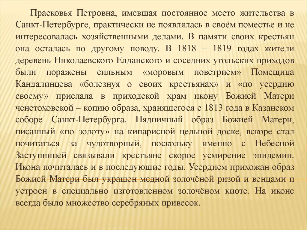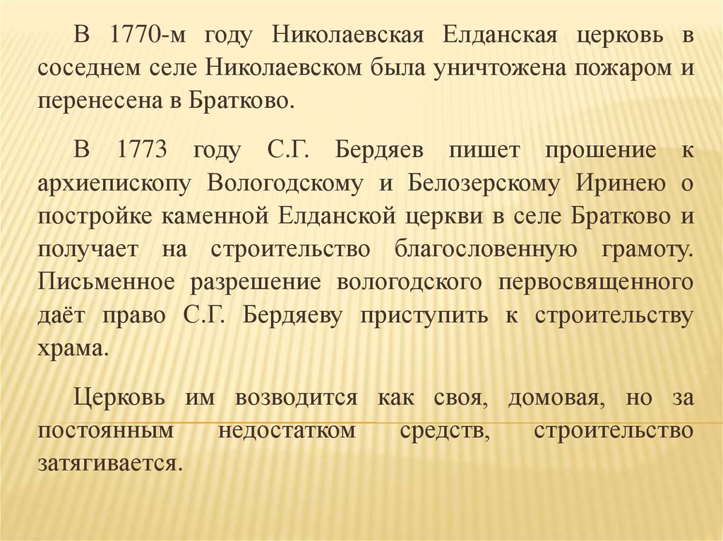 В 1770-м году Николаевская Елданская церковь всоседнем селе Николаевском была уничтожена пожаром и