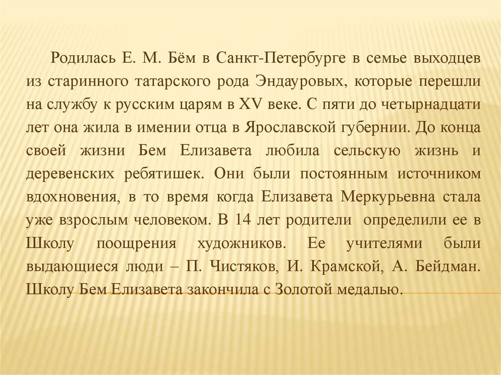 Елизавета Бем. Биография ее сложилась счастливо. Ее произведения живы