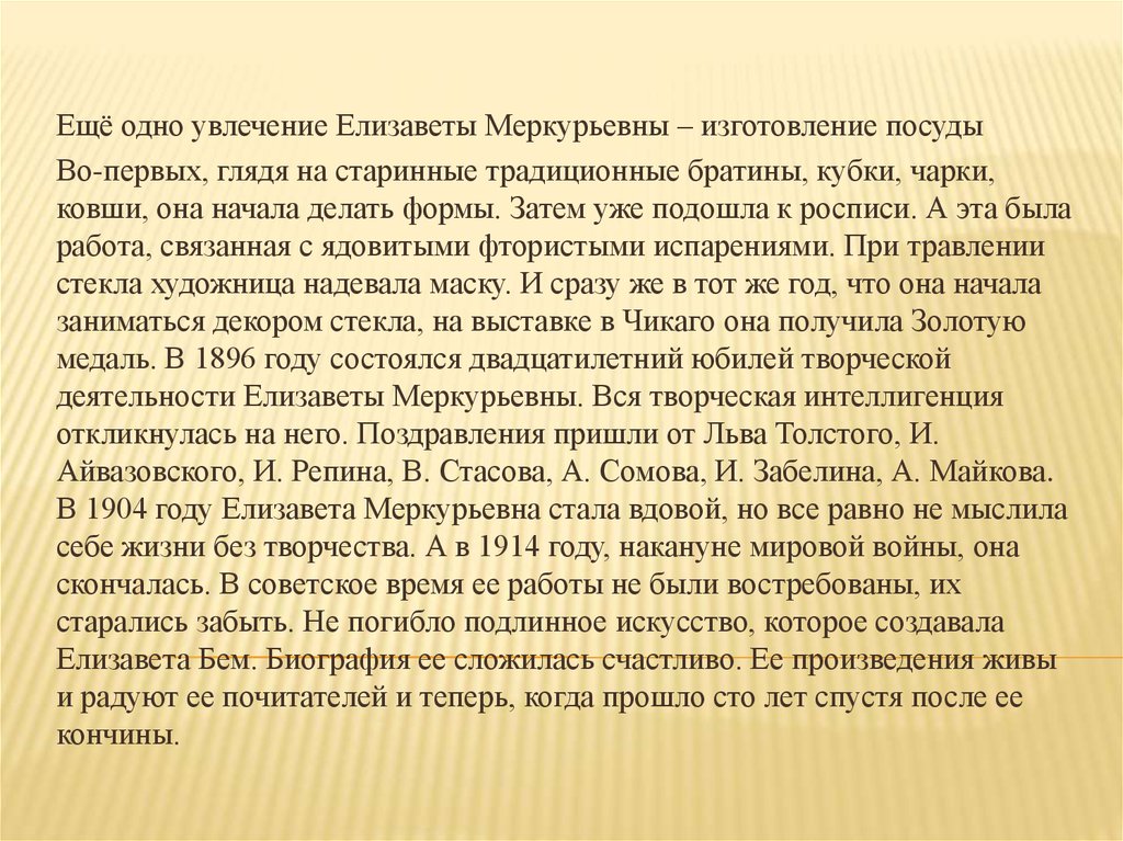 заниматься декором стекла, на выставке в Чикаго она получила Золотую