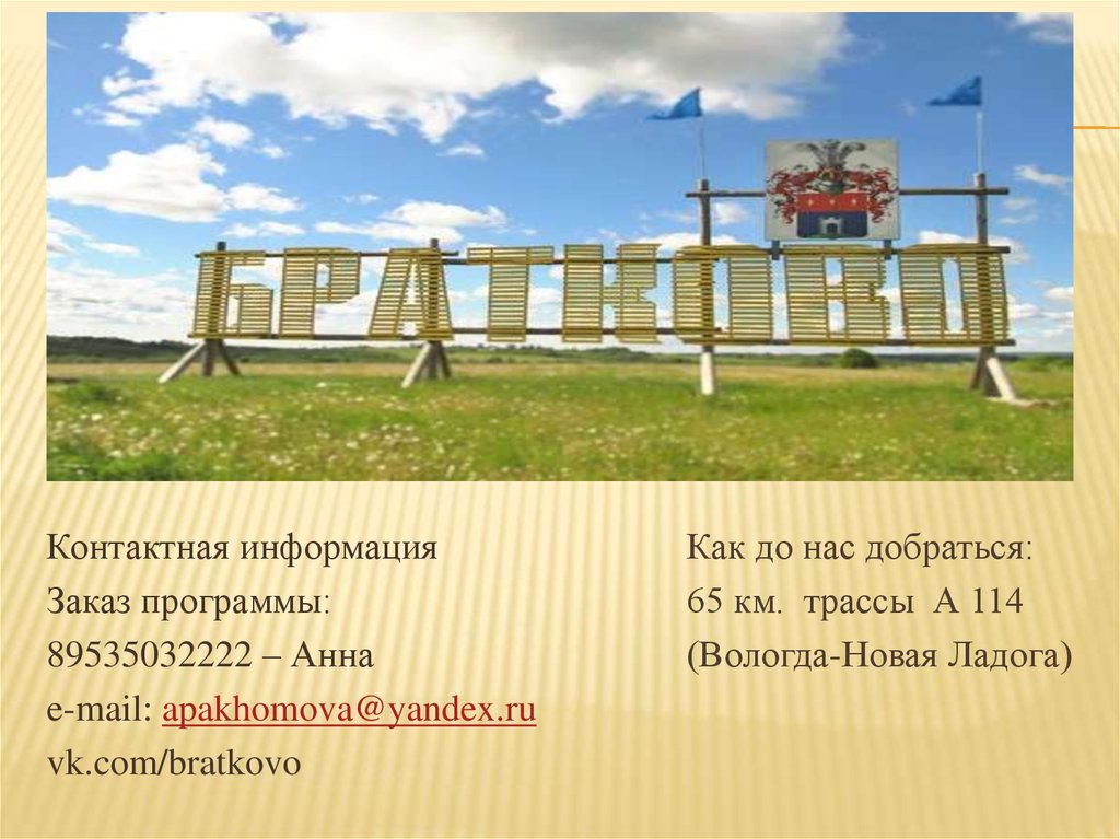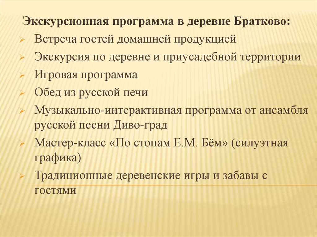 Экскурсионная программа в деревне Братково:Встреча гостей домашней продукцией