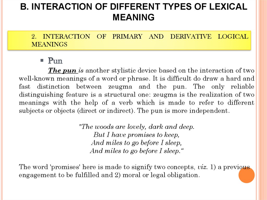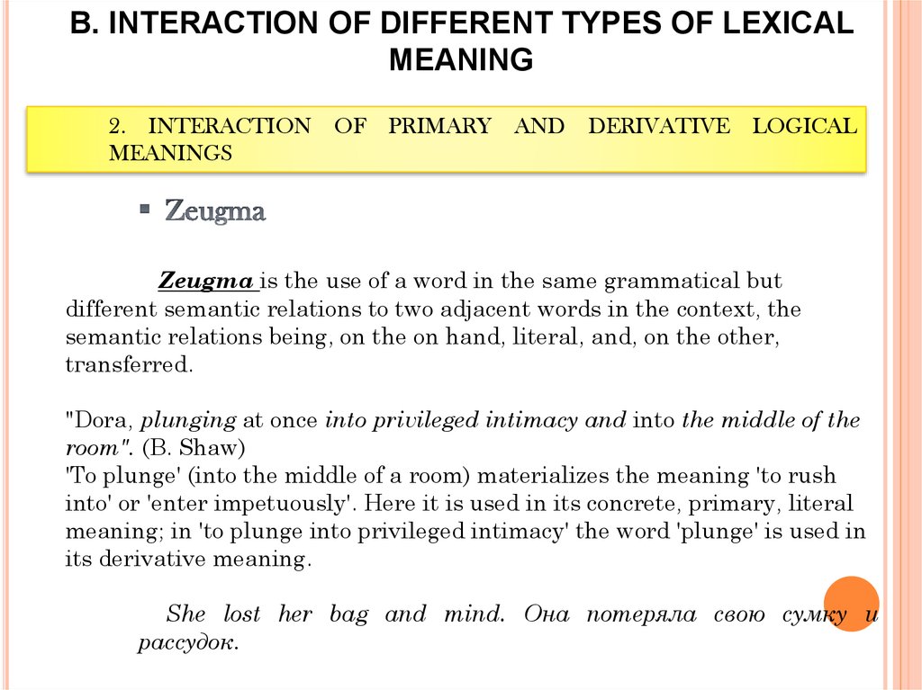 B. INTERACTION OF DIFFERENT TYPES OF LEXICAL MEANING