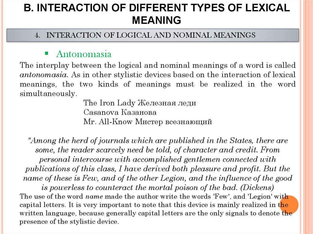 antоnomasia. As in other stylistic devices based on the interaction of lexical