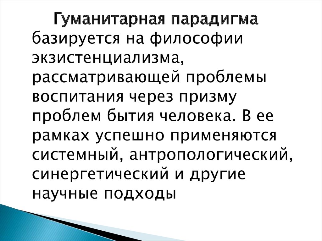 Гуманистическая парадигма –ориентирована на максимально