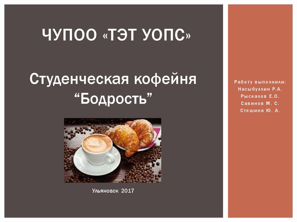 ИДЕЯ ПРОЕКТАОткрытие студенческой кофейни «БОДРОСТЬ» с
