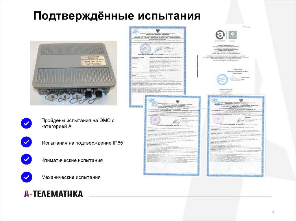 Подтверждённые испытанияПройдены испытания на ЭМС с