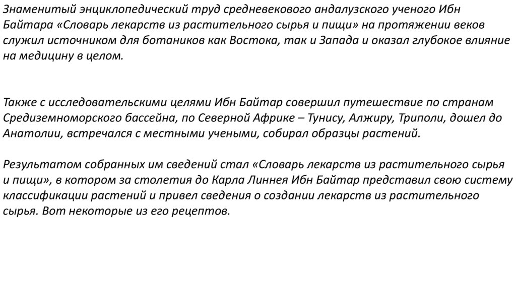Знаменитый энциклопедический труд средневекового андалузского ученого ИбнБайтара «Словарь лекарств из растительного сырья и пищи» на протяжении веков