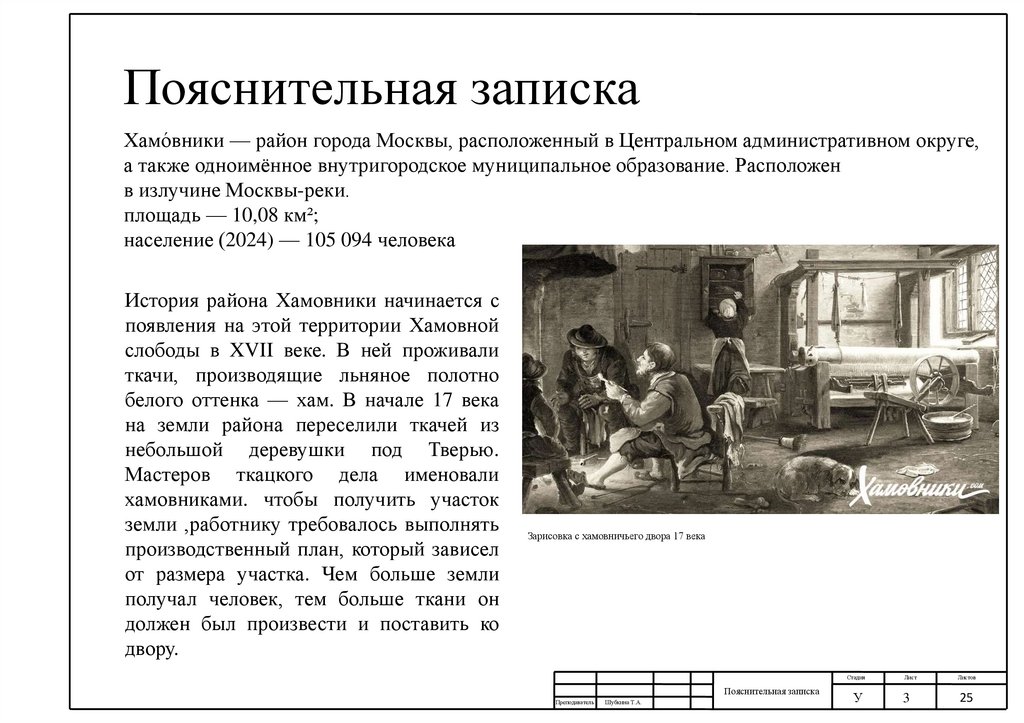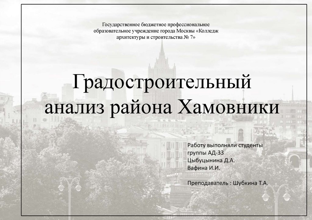 Пояснительная запискаХамо́вники — район города Москвы, расположенный в Центральном административном округе,