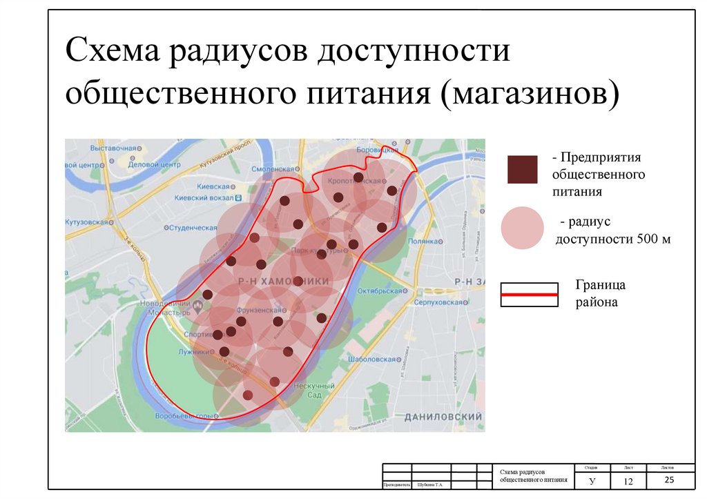 Схема радиусов доступностиобщественного питания (Ресторанов)