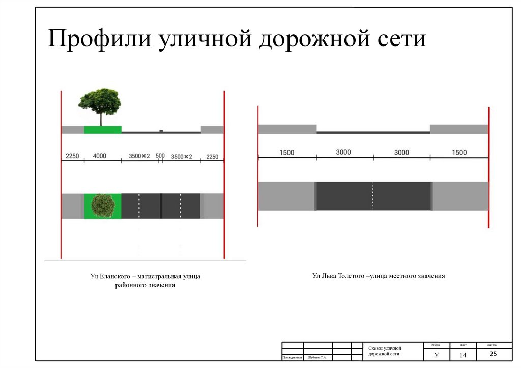 Профили уличной дорожной сетиУл Льва Толстого –улица местного значения
