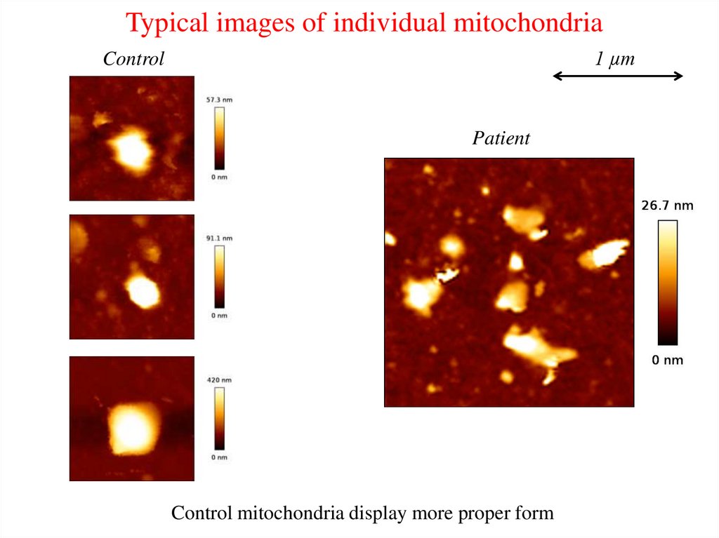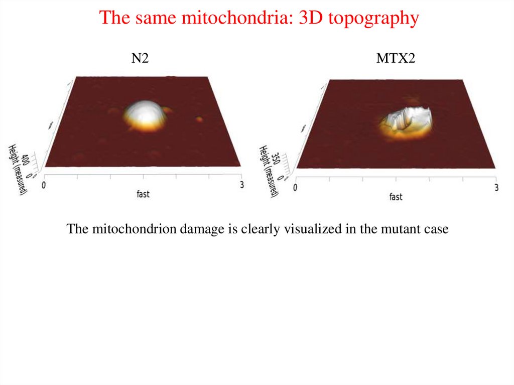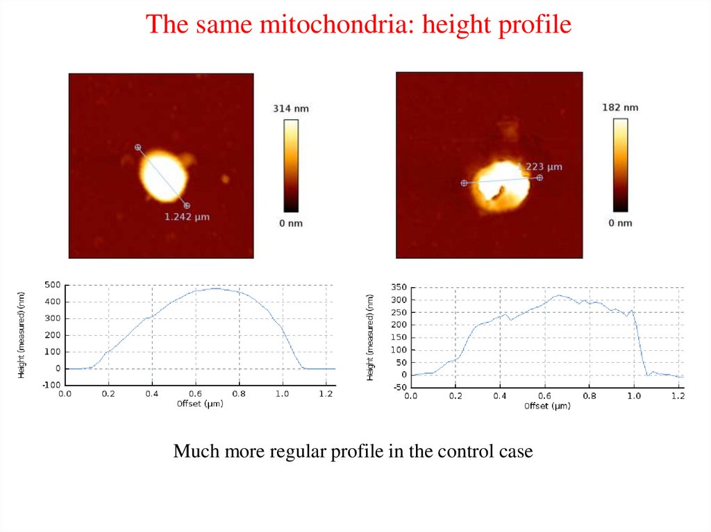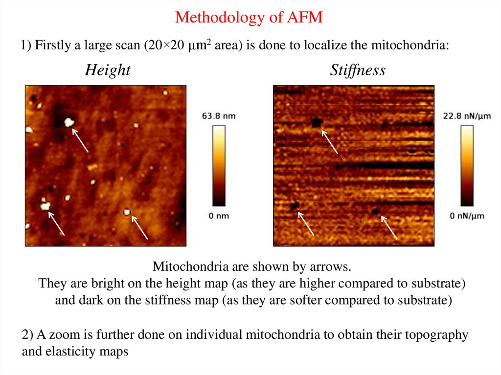 Methodology of AFM1) Firstly a large scan (20×20 µm2 area) is done to localize the mitochondria: