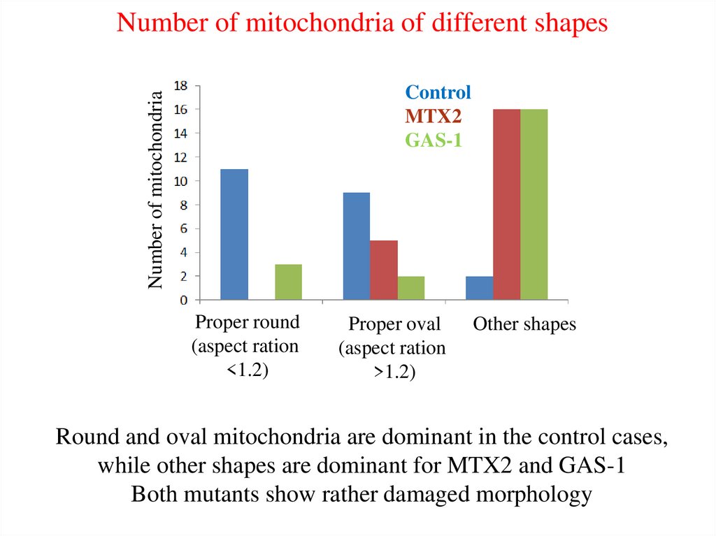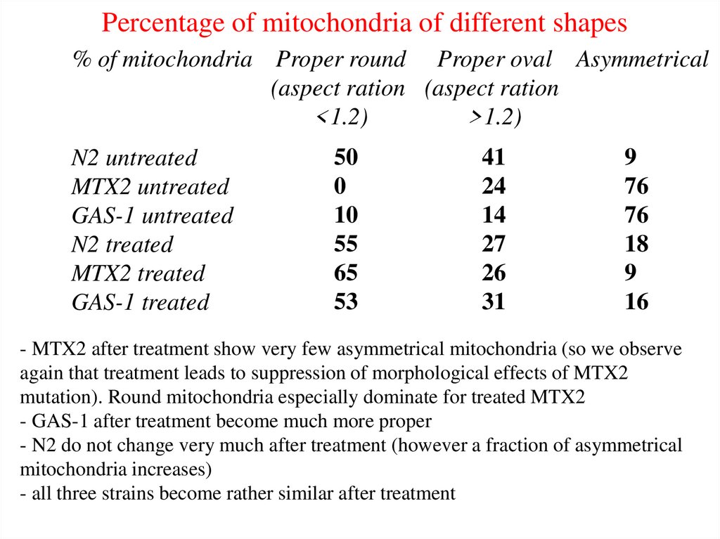 Percentage of mitochondria of different shapes% of mitochondria Proper round Proper oval Asymmetrical