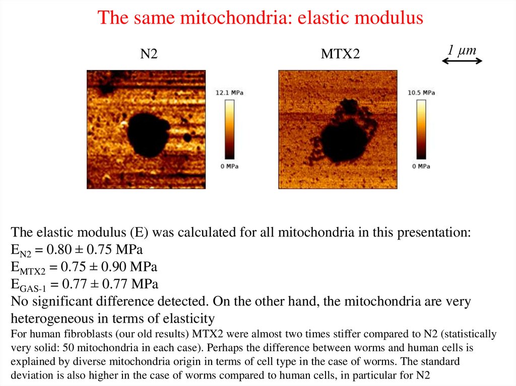 AFM study of mitochondria of C. Elegans: N2, MTX2 and GAS-1