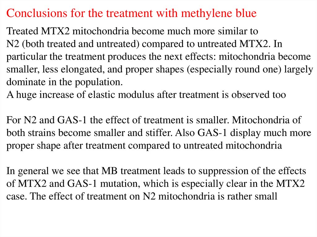 Conclusions for the treatment with methylene blueTreated MTX2 mitochondria become much more similar to