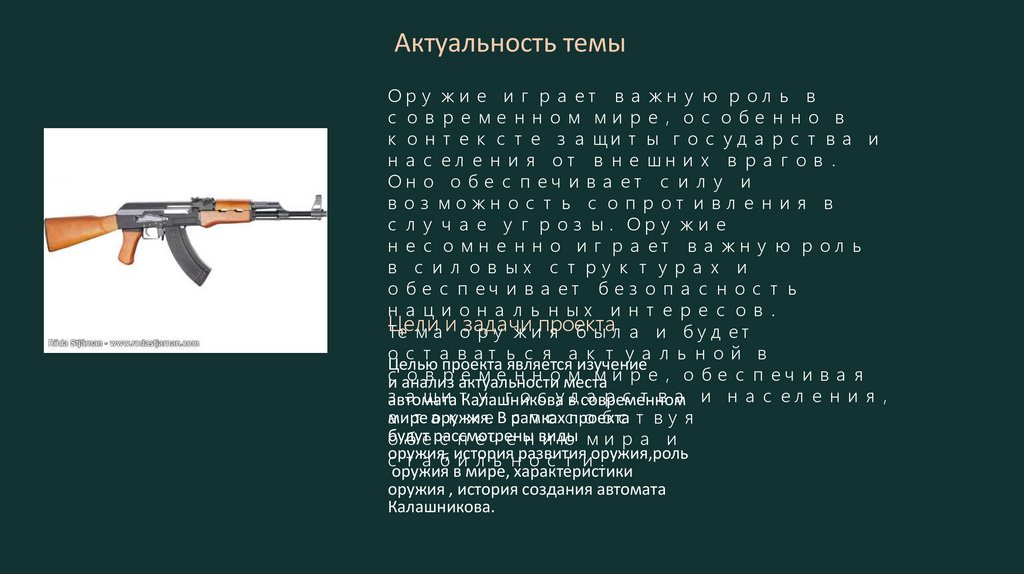 стрелкового оружия в мире, автомат Калашникова прочно занимает