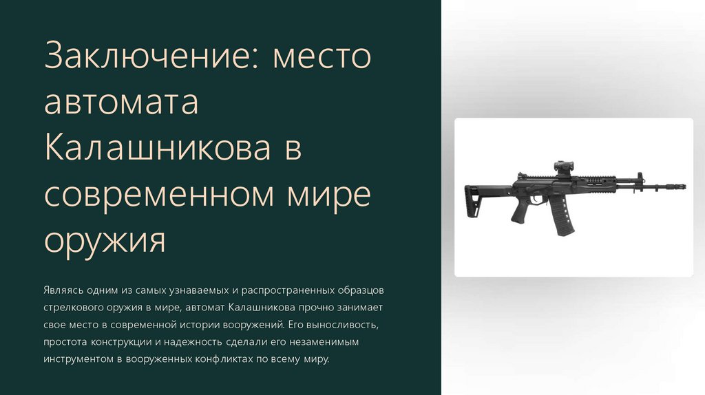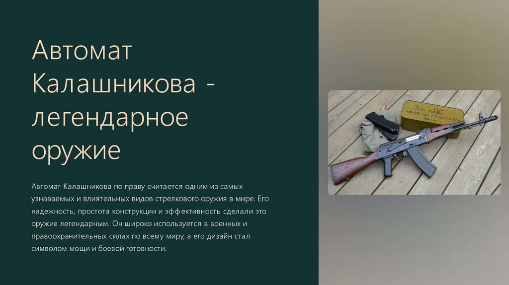 узнаваемых и влиятельных видов стрелкового оружия в мире. Его