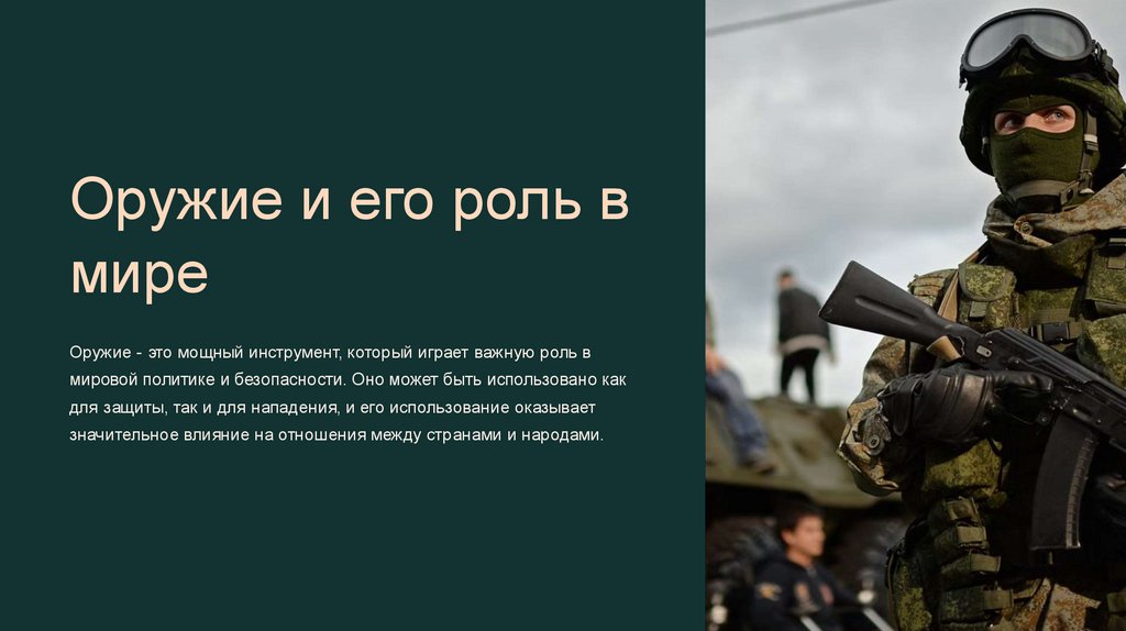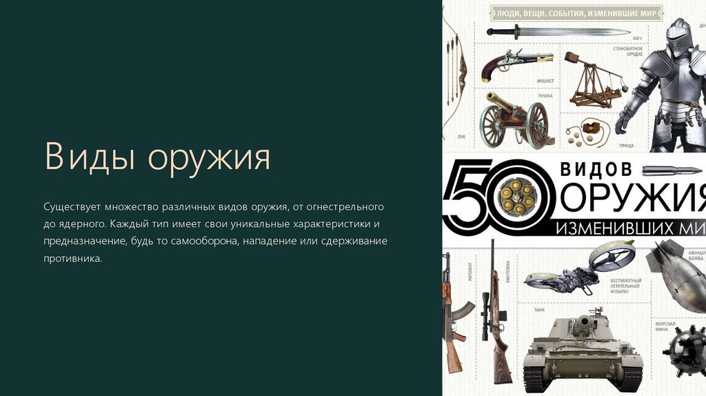 Виды оружияСуществует множество различных видов оружия, от огнестрельного