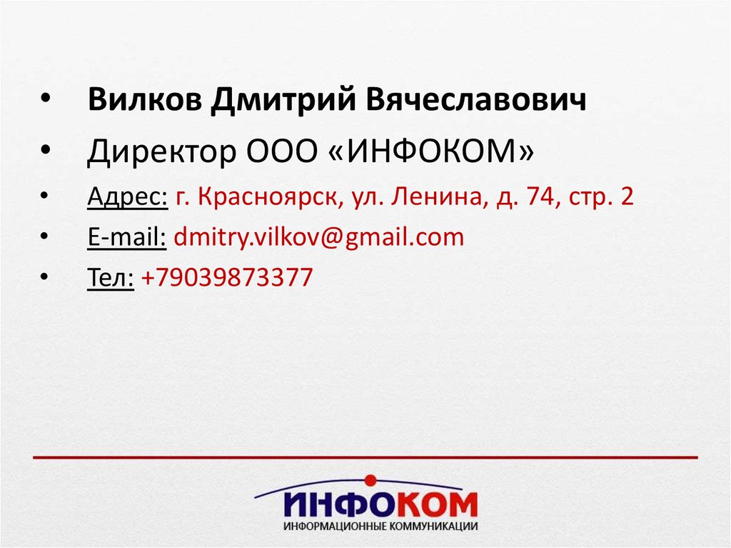 • Вилков Дмитрий Вячеславович• Директор ООО «ИНФОКОМ»