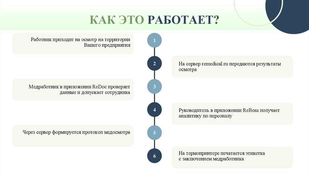 КАК ЭТО РАБОТАЕТ?Работник приходит на осмотр на территории