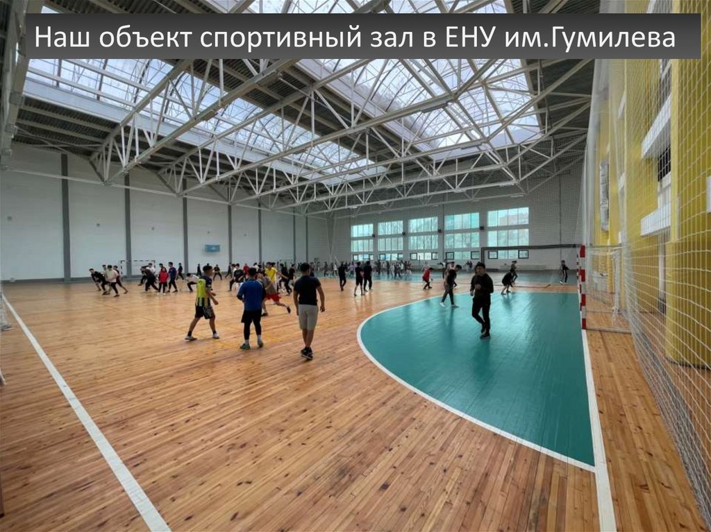 Наш объект спортивный зал в ЕНУ им.Гумилева13.
