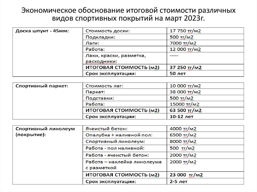 Экономическое обоснование итоговой стоимости различныхвидов спортивных покрытий на март 2023г.