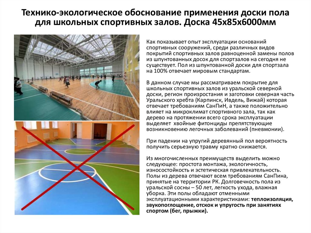 Технико-экологическое обоснование применения доски поладля школьных спортивных залов. Доска 45х85х6000мм