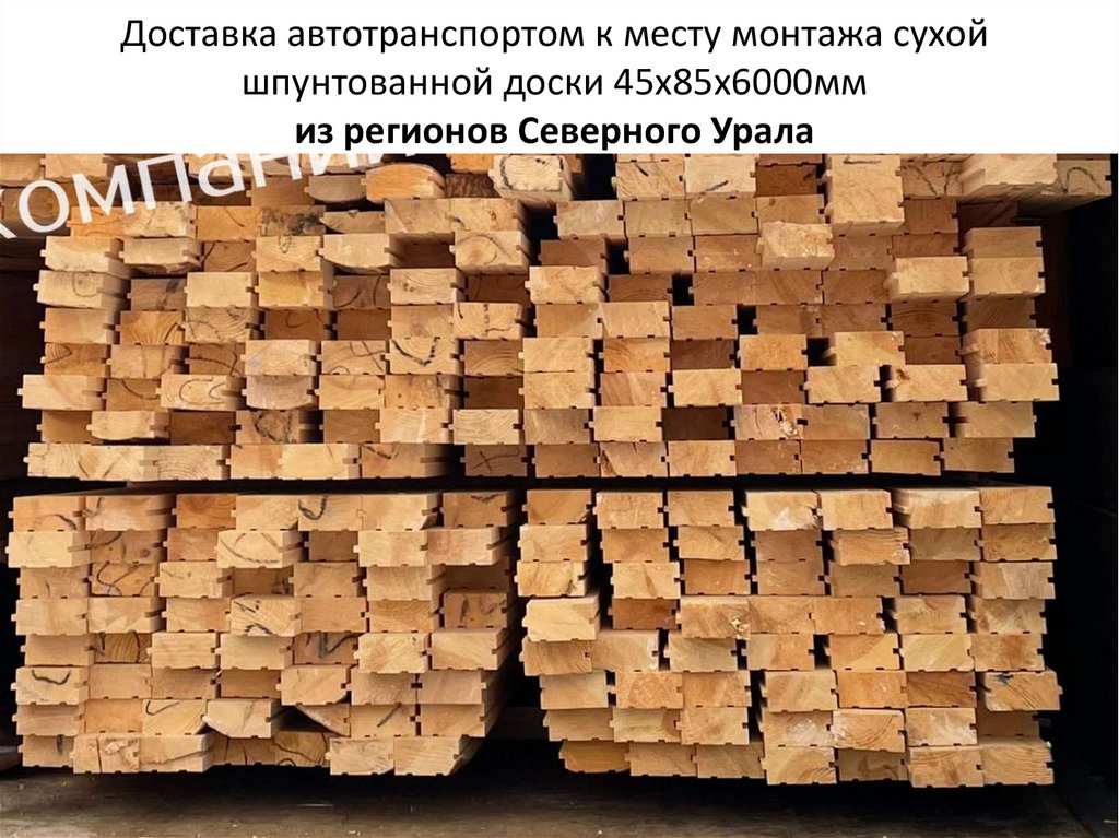 Доставка автотранспортом к месту монтажа сухойшпунтованной доски 45х85х6000мм